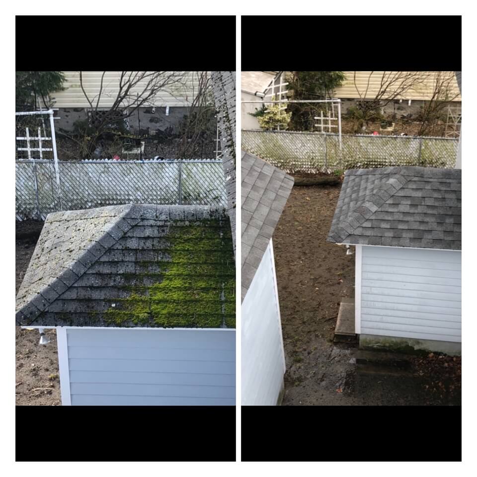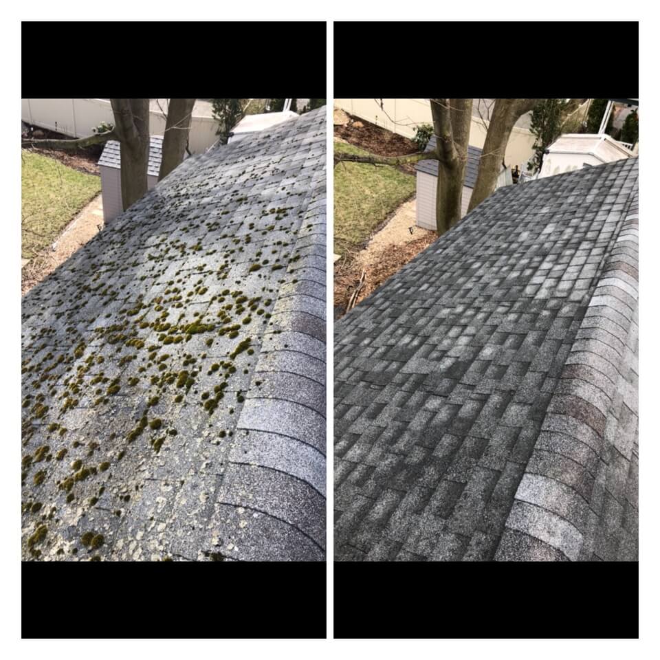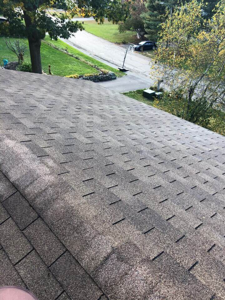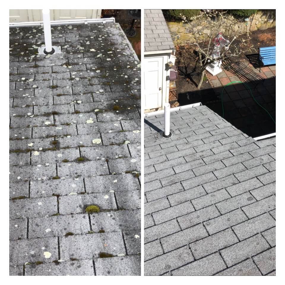 HiCleaners is the most experienced company in Cochituate, MA that deals with roof washing and roof soft washing. All of our employees are trained to recognize precise solution mixing ratios to provide you with the safest and most effective soft washing service. Roofs are a commonly neglected part of a house due to the fact that most people don’t have ladders to access it, so it is very easy to just leave it alone and forget about problems that may start to arise. Just like many home owners, discoloration and small bits of moss on a roof can be overlooked because of the misconception that it is just aesthetic. However, it isn’t just aesthetic, the moss slowly lifts the granules off the shingles which in turn shorten the life of the shingle. The moss also spreads, just like any bacteria if it is left alone for too long, it can quickly become a problem that spirals out of control. Call HiCleaners for a free quote, we only use the most advanced eco-friendly solutions and equipment to make sure the job is done right, for the safety of the employees, your plants, grass, pets, and children.